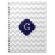 Leicht graue Zickzack Navy Quatrefolienmonogramm Notizblock