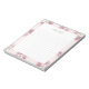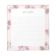 Dieses hellrosa, mit Blumen gesäumte Notizblock verfügt über anpassbaren Text oben. Personalisieren Sie mit Ihrem Namen oder spezifischen Text wie To Do List, Grocerliste oder From the Desk of . Das Notizblock ist ein großartiges Geschenk für Gärtner, Mütter, Großmütter, Schwestern, Freunde und alle anderen, die Blume genießen. Pair es auch mit anderen Elementen in dieser Sammlung.