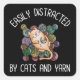 Leicht von Katzen und Garnen abgelenkt Quadratischer Aufkleber