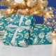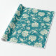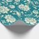 Leichte Creme und Aquamarin-grüne BlumenDamasken Geschenkpapier