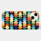 Dieses Handy Gehäuse hat eine geometrische Gestaltung von hellen Diamanten überlappend auf einem Feld von schwarz.