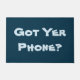 Diese lustige Tür hat eine Frage in großen Buchstaben gedruckt, um Sie an den Karo zu erinnern, dass Sie Ihr Handy in Ihrer Tasche oder Tasche got haben, während Sie die Zuhause "Got Yer Phone?" ist die Frage, die Sie sehen werden, wenn Sie gehen, um Ihre Tür zu öffnen. Die sanfte Erinnerung wird Ihren Speicher verbinden, um den Karo für Ihr Handy zu verdoppeln, bevor Sie das Haus verlassen, es ist auch eine sonderbare und lustige Tür, um in Ihrem Zuhause zu haben. Dies ist eine anpassbare Tür, Sie können die Farbe wählen und mit Ihrem eigenen Text personalisieren, wenn Sie möchten.