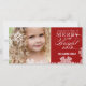 LEICHTE UND HELLE FOTOKARTE MIT WEISSEN SCHNEEFLAKEN AUF ROTEN HINTERGRUNDFARBE. Elke Clarke© Ersetzen Sie das Beispiel-Foto durch Ihr eigenes und personalisieren Sie es mit Ihrem Namen und Jahr. Wählen Sie "Anpassen", um das Schneeflockenmuster so zu ordnen, dass es nicht Teile Ihres gewollt Fotos abdeckt. Brauchst du Hilfe? Shop Besitzer kontaktieren.
