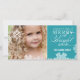 LEICHTE UND HELLE FOTOKARTE MIT WEISSEN SCHNEEFLAKEN AUF TÜRKISCHER HINTERGRUNDFARBE. Elke Clarke© Ersetzen Sie das Beispiel-Foto durch Ihr eigenes und personalisieren Sie es mit Ihrem Namen und Jahr. Wählen Sie "Anpassen", um das Schneeflockenmuster so zu ordnen, dass es nicht Teile Ihres gewollt Fotos abdeckt. Brauchst du Hilfe? Shop Besitzer kontaktieren.