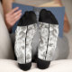 Socken mit einem hellen, monochromen Fliesenmuster, das im Schatten wie gemeißelter Marmor tief ist.