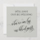 Dieses Design enthält den Text "We'll Have Our Big Wedding", gefolgt von "wenn wir unsere geliebten Gäste umarmen können" in einem wunderschönen, wirbelnden Script-Schriftart. Benutzen Sie die Vorlagenfelder, um Ihre persönlichen Daten hinzuzufügen und einen beliebigen Textentwurf zu ändern, um Ihre Bedürfnisse und Situation Anzug. Wenn Sie noch kein Datum Set haben, können Sie auf die Schaltfläche klicken, um die unnötigen Zeilen weiter anzupassen und zu entfernen. Sie können den Hintergrund beliebig ändern. Wenn Sie lieber meine Hilfe beim Anpassen haben möchten, zögern Sie bitte nicht, sich zu melden. 119 //