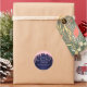 Lebhafte rosa Glitzer-Tropfen auf dunkelblauen Etiketten für Karosbutter.