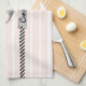 Modernes Küchentuch mit grauem Aquarellanker auf hellrosa und weiß gestreiftem Hintergrund. Sie können das Design auch mit benutzerdefiniertem Text unter dem Anker personalisieren.
