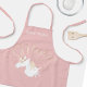 Dieses Produktdesign zeichnet sich durch eine zeitgenössische Einhorn-Illustration mit Blasen und dem Wort Magical aus. Die mythologische Tierdarstellung in Weiß und Rose Rosa bildet eine moderne und einzigartige Schürze mit personalisiertem Kindertext.