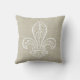 Erhalten Sie den Leinenblick mit diesem reizenden französischen Land inspirierten Leinen- und weißen Kissen. Dieses Kissen kennzeichnet eine Vintage Illustration eines französischen Liliensymbols im Weiß gegen einen Leinenbeschaffenheitshintergrund. Merken Sie das Gewebe ist nicht Leinen, aber eine Leinenblickbeschaffenheit, die auf dem Gewebe gedruckt wurde, rieb Sie wählen (weniger Falten - yay!!)