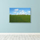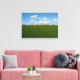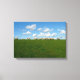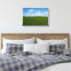 Blätter in einer Reihe auf einem grünen Gras und blauer Himmel im Hintergrund gewickelte Leinwand Druck.