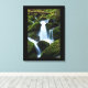 Leinwand Art gezeigt mit einem Foto von einem schönen Wasserfall in den Bergen. Leinwand hat einen schwarzen Rand.