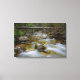 Leinwand Landschaftsbild Wasser mit Bewegungsunschärfe in einer Felsbucht in einem Wald in Norwegen mit einem gefallenen Baum als Brücke darüber.
