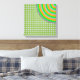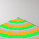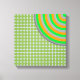 Die Leinwand der farbigen Konzentrierten Kreise mit grauem Hintergrund unterhalb eines zweiten Hintergrunds kleiner gekachelter konzentrischer Kreise. Endlich wurde ein gleich konzentrierter Kreis groß platziert und zugeschnitten, um nur ein Viertel des Kreises zu enthüllen, das in der oberen rechten Ecke der Leinwand platziert wurde. Diese Leinwand ist ein Set von vier Leinwand, die zusammen den großen Kreis von Zuschnitten vervollständigen werden.