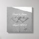 Herzen im Sand zeichnend Strandfotografie Leinwand drucken Romantische Wohngestaltung für frisch gezapfte / verheiratete Paar. Elegante Schrift Typografie für das Mietdatum und Namen für Braut und Bräutigam / Ehemann und Ehefrau Ehepaar. Klassisches Schwarz-Weiß- oder sephia-farbenes Foto. Gezeichnet verstrickte Herzen an einem sandigen Flitterwochenstrand. Schöner Valentinstag, Hochzeit oder Jubiläumsgeschenk Idee. Romance Liebe Thema Foto. Chic Küstenbild. Dekoratives nautisches Bild für Büro, Schlafzimmer oder Wohnzimmer.