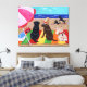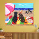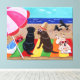 Summer Breeze Labradors Leinwand drucken. Funny Labrador Retriever auf dem Strand Malerei Design. Das Schwarze Labrador und Schokolade Labrador und das Gelbe Labrador sind alle im Bild gemalt. Happy und niedliche Labrador Retriever Hunde haben viel Spaß am Strand. Farbenfrohe und fröhliche Sommerlandschaft mit Labradoren. Gemalt von Naomi Ochiai aus Japan.