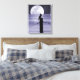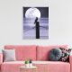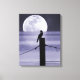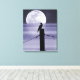 Ein Anhinga führt auf einem Pfosten am Rand eines mondbeleuchteten Sees. Schwarz-Weiß-Fotografie mit lila Filterung.