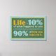 "Das Leben ist 10% von dem, was einem geschieht, und 90% davon, wie man darauf reagiert". Sehen Sie in meinem Geschäft für weitere Artikel mit diesem Zitat.