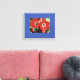 Diese gewickelte Leinwand zeigt mein Foto von zwei hellen roten Tulpen, eine mit einem Rindrop!