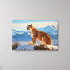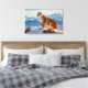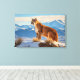 Im Wintermonat wird eine überdachte Leinenkunst mit einem Foto von einem wunderschönen wilden Berglöwe gezeigt. Lizenziertes Bild