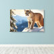 Im Wintermonat wird eine überdachte Leinenkunst mit einem Foto von einem wunderschönen wilden Berglöwe gezeigt. Lizenziertes Bild