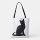 Schwarze Katze Design auf der Tasche der Leinwand.