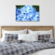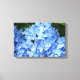 Atemberaubende, blaue Hydrangea-Blüten, wie Haufen von blauen Schmetterlingen, schmücken diese hübsch umhüllte Leinwand. Dieses bezaubernde, fotografische Bild wird in jedem Raum einen unmittelbaren Fokus darstellen.