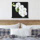 Maßgeschneiderte Leinenkunst wird mit einem grafischen Druck hübscher weißer Orchideen auf schwarzem Hintergrund gezeigt. Passen Sie dieses Objekt an oder kaufen Sie, wie es ist. Bild