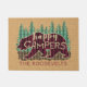 Leinwandbären des Campings der glücklichen Lagerbewohner des rustikalen nennen karierter Kiefernwald, Camper die personalisierte Familie
