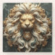 Dieser mächtige goldene Löwe sticht durch seine strahlenden grünen Augen und seinen kühlen Ausdruck hervor. Die elegante, hochdetaillierte Mansarde, während der smaragdgrüne und marmorfarbene Hintergrund seine regelmäßige und furchtlose Präsenz verstärkt