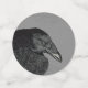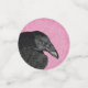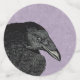 Diese Tabelle Konfetti hat eine Abbildung des Kopfes und Gesicht einer schwarzen Krähe auf verschiedenen Farben lila, grau und rosa.