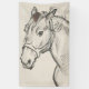 Dieses Design zeigt eine Tintenskizze des französischen Künstlers Alfred Dehodencq (1822-1882). Es ist eine nahe Sicht auf den Kopf eines Pferdes, die sein langes Gesicht, seine Mane, seinen muskulösen Hals und mandelförmige Augen zeigt. Es ist ein attraktives und emotionales Bild eines eleganten Pferdes. Die Originalskizze wurde 1860 produziert.