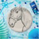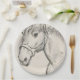 Dieses Design zeigt eine Tintenskizze des französischen Künstlers Alfred Dehodencq (1822-1882). Es ist eine nahe Sicht auf den Kopf eines Pferdes, die sein langes Gesicht, seine Mane, seinen muskulösen Hals und mandelförmige Augen zeigt. Es ist ein attraktives und emotionales Bild eines eleganten Pferdes. Die Originalskizze wurde 1860 produziert.