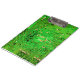 Eine grüne Leiterplatte mit genügenden Stromkreisen, zum irgendeines Typ oder Mädchen Geek, SIE Person oder des Elektronikfreaks zu gefallen. Entwerfen Sie durch SusanEileenEvans, basiert auf einem public- domainFoto.
