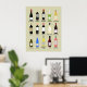 Fügen Sie eine lustige Touch zu Ihrer Küche oder einem beliebigen Raum mit diesem Poster, das Illustrationen von Weinflaschen in einem einfachen Doodle-Stil mit den verschiedenen Sorten von Weiß-, Rot- und Schaumwein, identifiziert unter jeder Flasche wie Chardonnay, Pinto Noir, Malbec, Champagner und mehr. Die perfekte Dekoration für Weinliebhaber und Kenner.