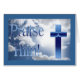 Schöner blauer Himmel von Wolken mit religiöser Botschaft und Kreuz. Design und Fotografie von Amber Sharp