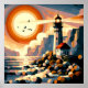 Ein abstraktes Bild eines Lichts an der Küste. vorwiegend orange