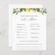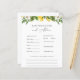 Babyduschberatung und Vorhersagekarte mit Aquarelllemonen und Grünpflanzen. Eine unterhaltsame Art, mit den Gästen während der Babydusche zu interagieren. Entspricht der Vintagen Zitronensammlung im Adore Paper Co Zazzle Shop.
