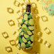 Zitronenslicen und Blätter. Nahtloses Muster. Benutzerdefinierte Hintergrundfarbe. Benutzerdefinierter Text auf jeder Seite.
