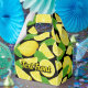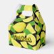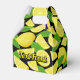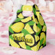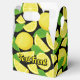 Zitronenslicen und Blätter. Nahtloses Muster. Benutzerdefinierte Hintergrundfarbe. Benutzerdefinierter Text auf beiden Seiten.