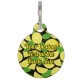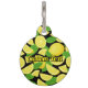 Zitronenslicen und Blätter. Nahtloses Muster. Benutzerdefinierte Hintergrundfarbe. Benutzerdefinierter Text auf jeder Seite.