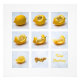 Collage von acht Fotografien einer Zitrone, die durch Beißen zu den Samen gegessen wird. Stellen Sie sich dieses Gesicht während dieses lebensbejahenden Verfahrens vor. Behalt trotzdem zu lächeln!