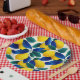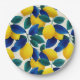 Lemon & Blue Blätter Vibranntes Farbmuster Pappteller