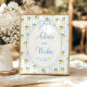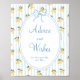 Ermutigen Sie herzliche Noten für die zukünftige Braut mit diesem eleganten "Ratschläge und Wünsche"-Zeichen. Freuen Sie sich auf fröhliche Zitronen, weiche blaue Streifen und ein hübsches Bug-Detail. Sie ergänzen perfekt Ihren mediterranen Brautparty oder Verlobung Brunch.