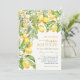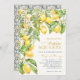Lemon Blue Bridal Dusche Einladung. Diese stilvolle Brautdusche vereint das Wesen zeitgenössischer Eleganz mit moderner Drehung. Es präsentiert einen trendigen Rahmen mit pulsierenden Zitronen, grüner Vegetation und zarten Zitronenblüten, alles Set vor einem klassischen Elfenbeinhintergrund mit goldfarbenem und marineblauem Text. Die Rückseite ist mit einem italienischen blauen, grünen und goldenen Fliesenmuster versehen. Das Design ist frisch und einladend, perfekt für eine Braut, die eine Touch modernen Flairs Liebe und gleichzeitig traditionelle Themen der Liebe und Gewerkschaft unter der mediterranen Sonne feiert.