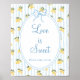 Fügen Sie Ihrem Brautparty eine süße Touch mit diesem Schild "Liebe ist süß" hinzu! Mit Aquarelllemonen, hellblauen und weißen Streifen und einem eleganten Bogen-Rahmen ist es der perfekte Akzent für Ihren Lieblingstisch, Dessert-Bar oder Bonbons bei einer Amalfi-inspiriert Feier.