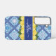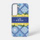 Stilvolle Zitronen und mediterrane blaue Fliesen Mit Monogramm Galaxy Case. Einzigartige und trendige Aquarelllemonen, grüne Blätter auf blauem Kachelhintergrund mit einer eigenen monogrammalen Vorlage und eleganter Kalligraphie-Schriftzeichen-Vorlage. Diese hübsche grüne, gelbe, blaue und weiße botanische Galaxie s22-Handyabdeckung würde Mama, Tochter, Oma, etc. zu einem nachdenklichen Geschenk machen.