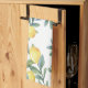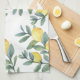 Wasserfarbenes Zitronenhandtuch aus botanischem Tee. Fröhliches sommergelbes Zitrusdesign.