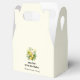 Tiny favor box with a lovely illustration of a bouquet of lemons surrounded by white blossoms leaves and sprigs.