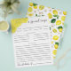 Frag den Gästen im Brautparty, ihre Lieblingsrezepte mit der Braut zu teilen, mit dieser einfachen Letter Sized "A Special Recipe" Karte. Dieses Design hat Aquarelllemonen und ein passender Bindemittel ist in unserem Geschäft erhältlich.